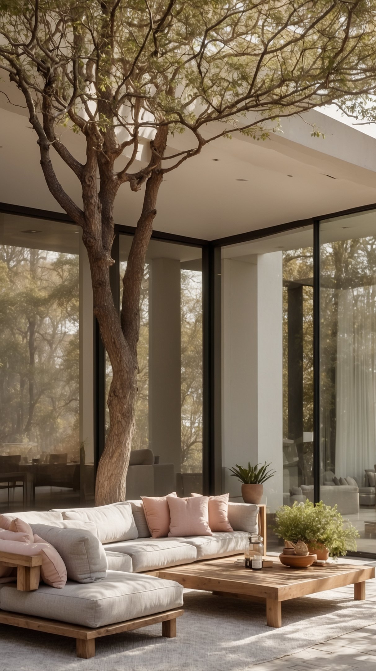 • Use weatherproof furniture, wooden accents, and potted plants to extend a calm Japandi feel outdoors.