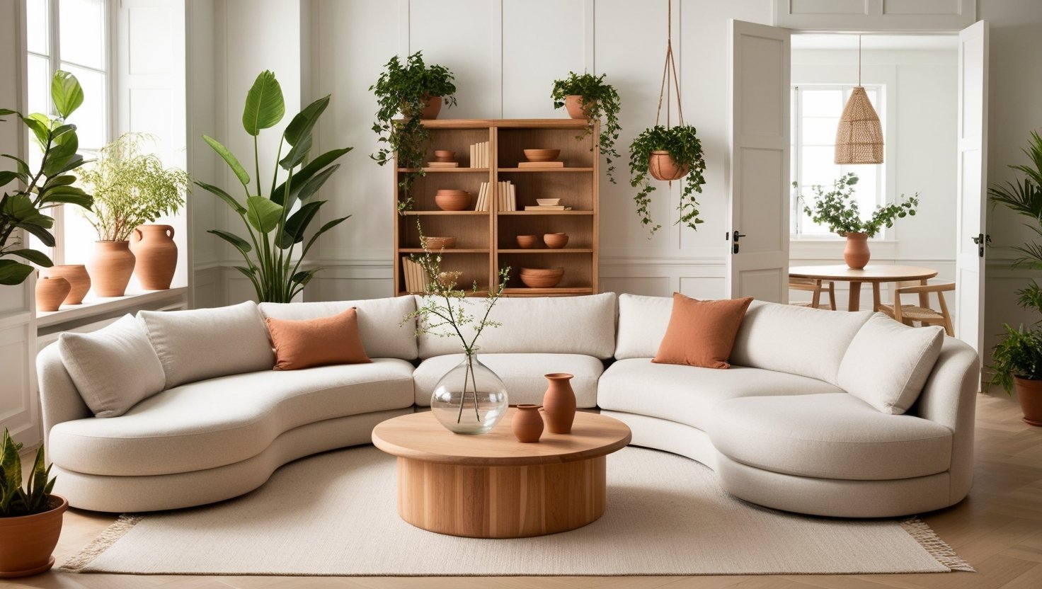 • Choose earthy, muted tones: Sage, terracotta, warm beige, and soft neutrals keep spaces inviting while preserving a light, airy feel.