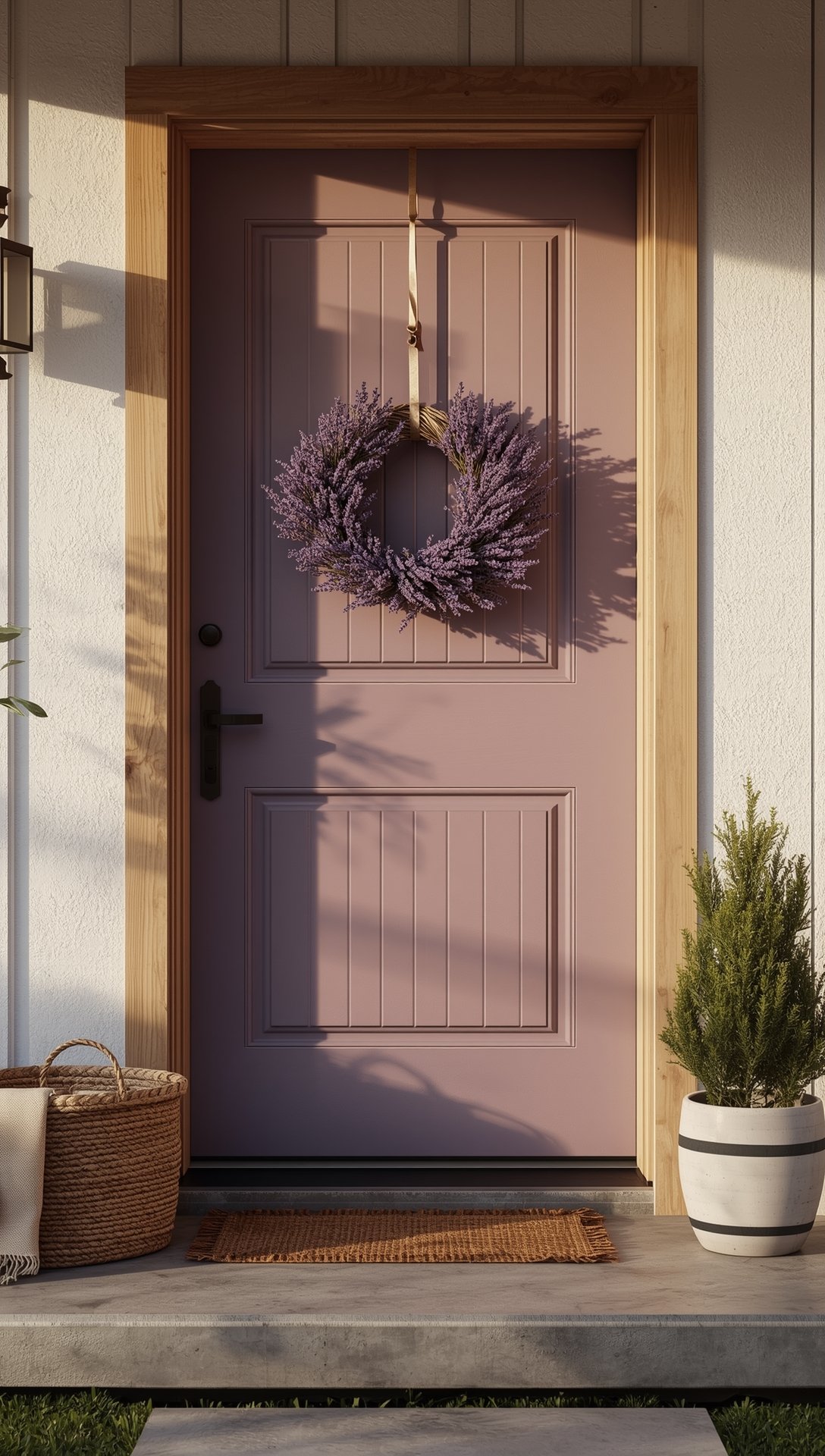 • Placement & pairing: Hang the wreath on a simple, matte-finish door, or pair it with a small wooden bench and a neutral doormat to extend the Japandi vibe.