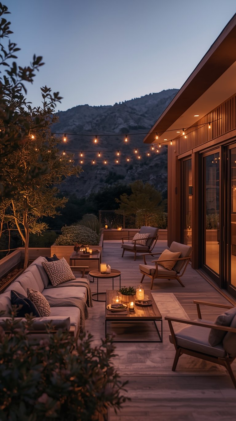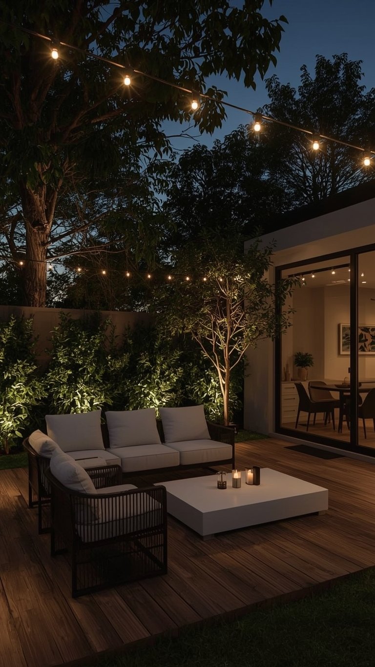 Outdoor string lights aren’t just for overhead; they’re fantastic for defining boundaries too. Run them along your fence line, deck railings, or even a garden wall. This creates a subtle glow that highlights the perimeter of your space, adding depth and a sense of enclosure. It’s a simple trick that makes a big difference.