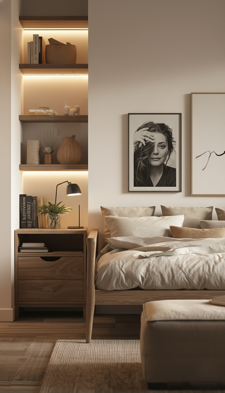 Use smart storage like wall shelves and under-bed storage. Plan your layout simply. This makes small spaces feel bigger.