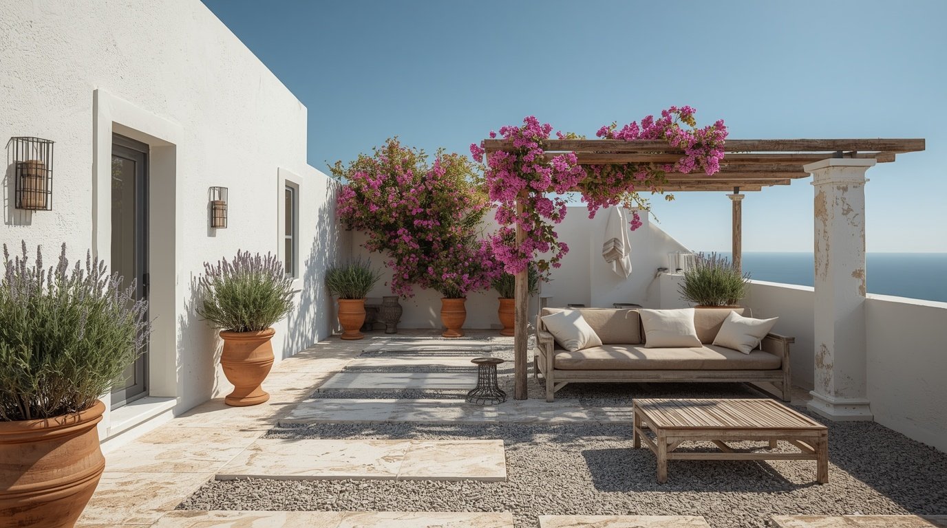 It’s the heart of the Mediterranean lifestyle! It’s about well-being and “slow living.” Dissolving the boundaries between your seaside house interior design and your garden makes your home feel like a continuous, peaceful sanctuary.